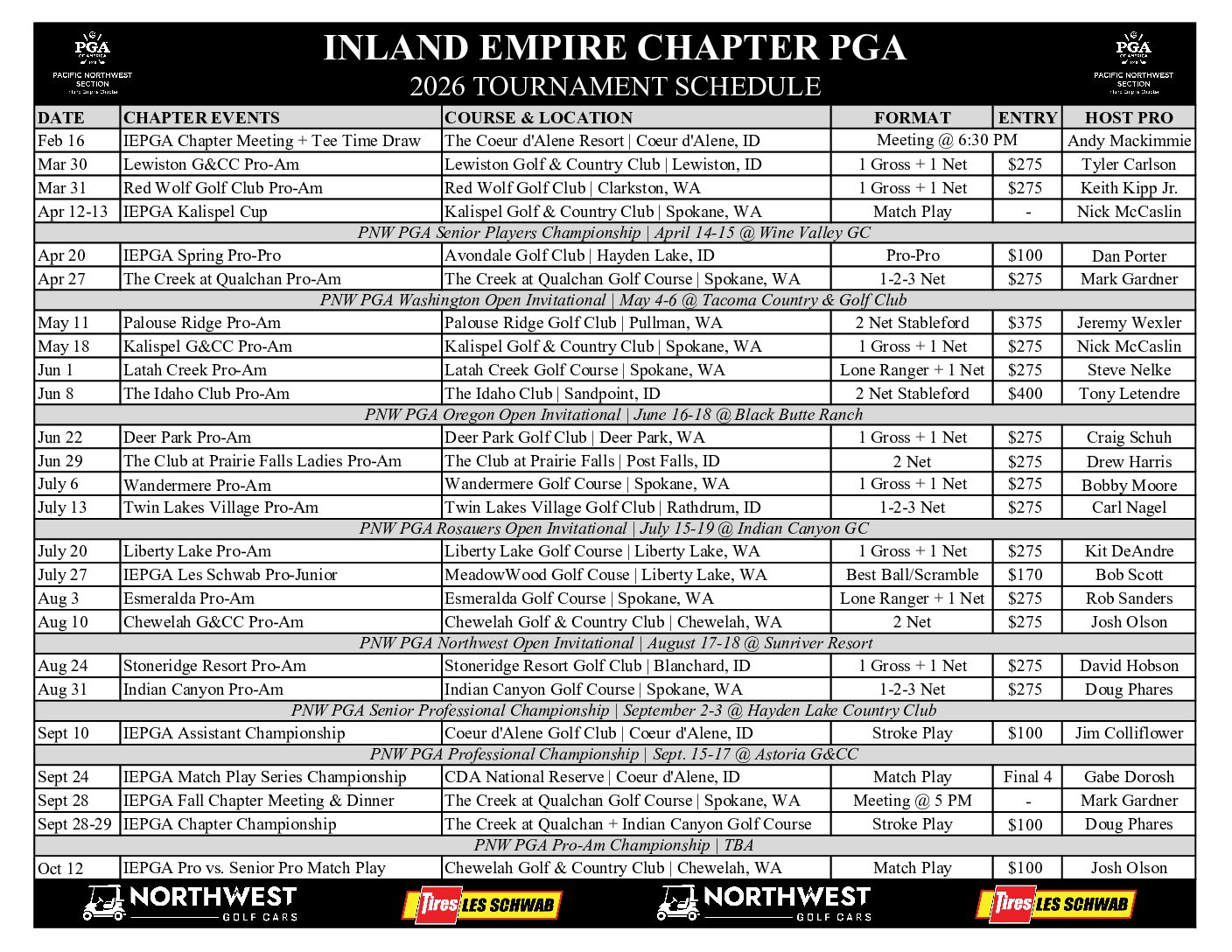 The 2026 Inland Empire Chapter Tournament Schedule is here!